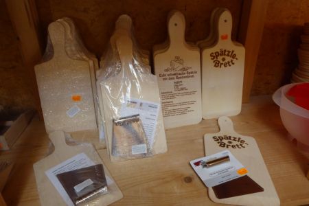 Für die schwäbische Küche: Spätzlesbrett und Schaber, Original Spätzlesdrücker von Kull in zwei Lochformen, Spätzlehobel für Knöpfle oder Spätzle, Maultaschenformer und Teigtaschenrad.
