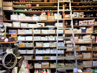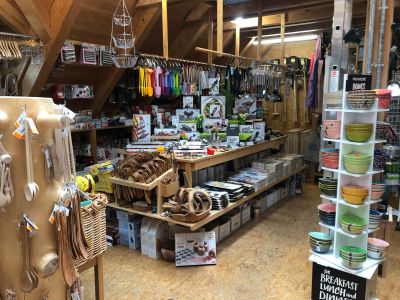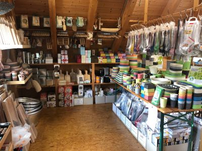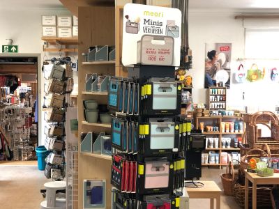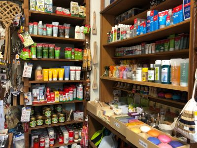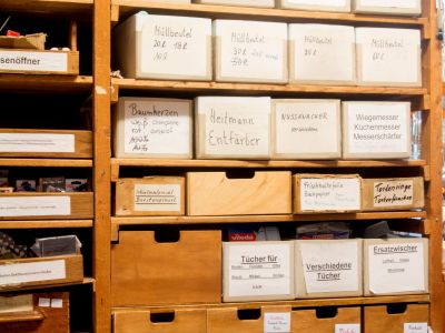 Der Hof in der Bismarckstraße 72/2 – mit den vielen, entlang der Hauswand aufgereihten Besen, Rechen und Gießkannen – lässt schon etwas von der Andersartigkeit des alten, tollen Geschäftes erahnen. Und wer die dunkelbraune, sprossenverglaste Holztür öffnet, betritt eine andere Welt, ist umgeben von einer angenehmen Duftmischung aus Holz, Bast, Stroh, Leinen, Weidengeflecht und – natürlich den ureigensten Seifenaromen. Mehr als 5.000 Artikel warten darauf, entdeckt und gegebenenfalls gekauft zu werden.
