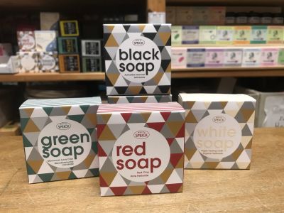Die vier Gesichtsseifen von Speick für unterschiedliche Hauttypen dürfen bei uns auch nicht fehlen, denn gut gereinigt ist halb gepflegt. Die Red Soap mit roter Heilerde zur Regeneration für reife oder trockene Haut. Die Green Soap mit marokkanischer Lavaerde für schnell fettende Haut. Die Black Soap mit Aktivkohle für entzündliche Haut und Akne. Aber auch fettige Haut wird sanft geklärt. Die White Soap mit Rügener Heilkreide für sensible oder zu Rötungen neigender Haut.
