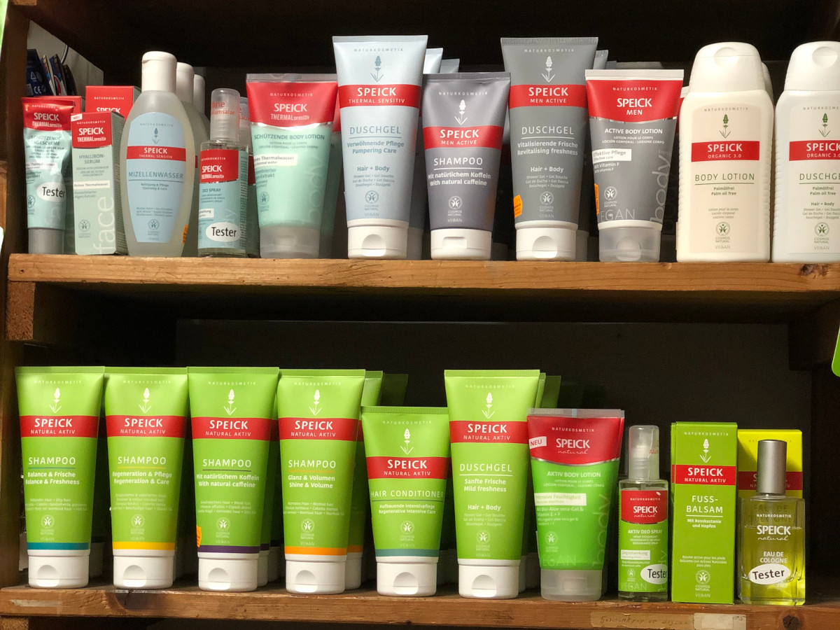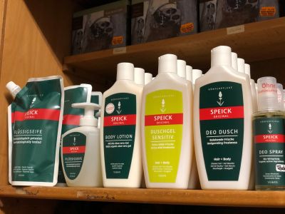 Die Serien Speick Men und Men Active widmen sich speziell den Pflegebedürfnissen der Männer. Ihr findet alles, was ihr für euren Körper benötigt: Duschgel, Deo Stick, Rasierschaum, Rasierseife und After Shave. Der ausdrucksstarke, erfrischend-belebende, maskuline Duft macht jede Anwendung zum Verwöhnmoment. Aber auch für alle weiblichen Speick-Liebhaberinnen gibt es tolle Produkte in unseren Regalen: verschieden duftende Seifen, Bodylotion, Gesichtspflege, Shampoo.