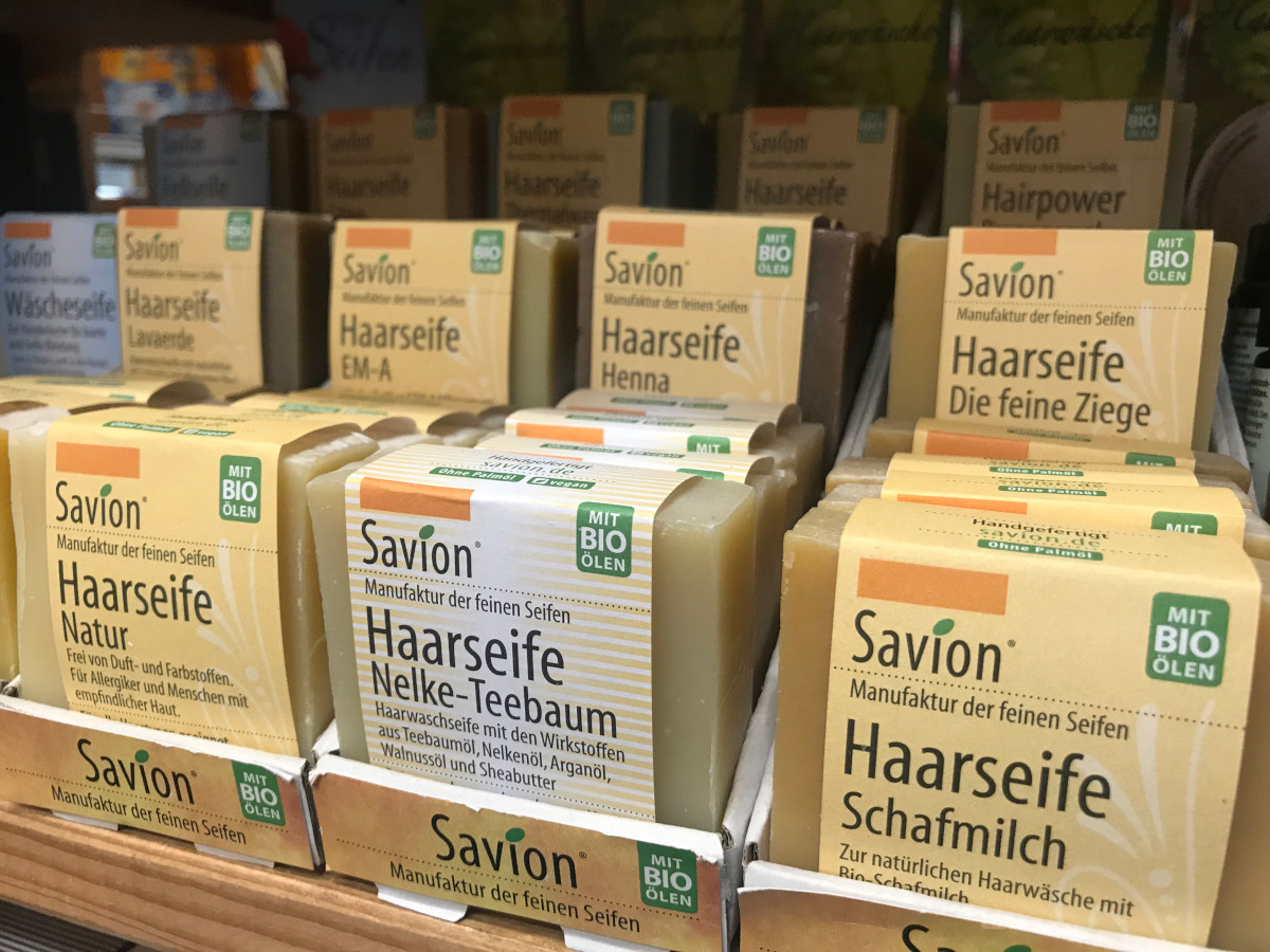 Seifen liegen wieder voll im Trend und inzwischen gibt es auch einen perfekten Ersatz für Flüssigshampoos: unsere Haarseife von Savion. Die Vorteile liegen auf der Hand: spezielle Rezepturen für die Haarwäsche - leichte Handhabung - stabiler Schaum - keine unnötige Verpackung - keine Überdosierung - ohne Konservierungsstoffe - ohne Emulgatoren - aus reinen Pflanzenölen mit hohem Anteil an Inhaltsstoffen aus kontrolliert biologischem Anbau. Und garantiert ohne Palmfett!