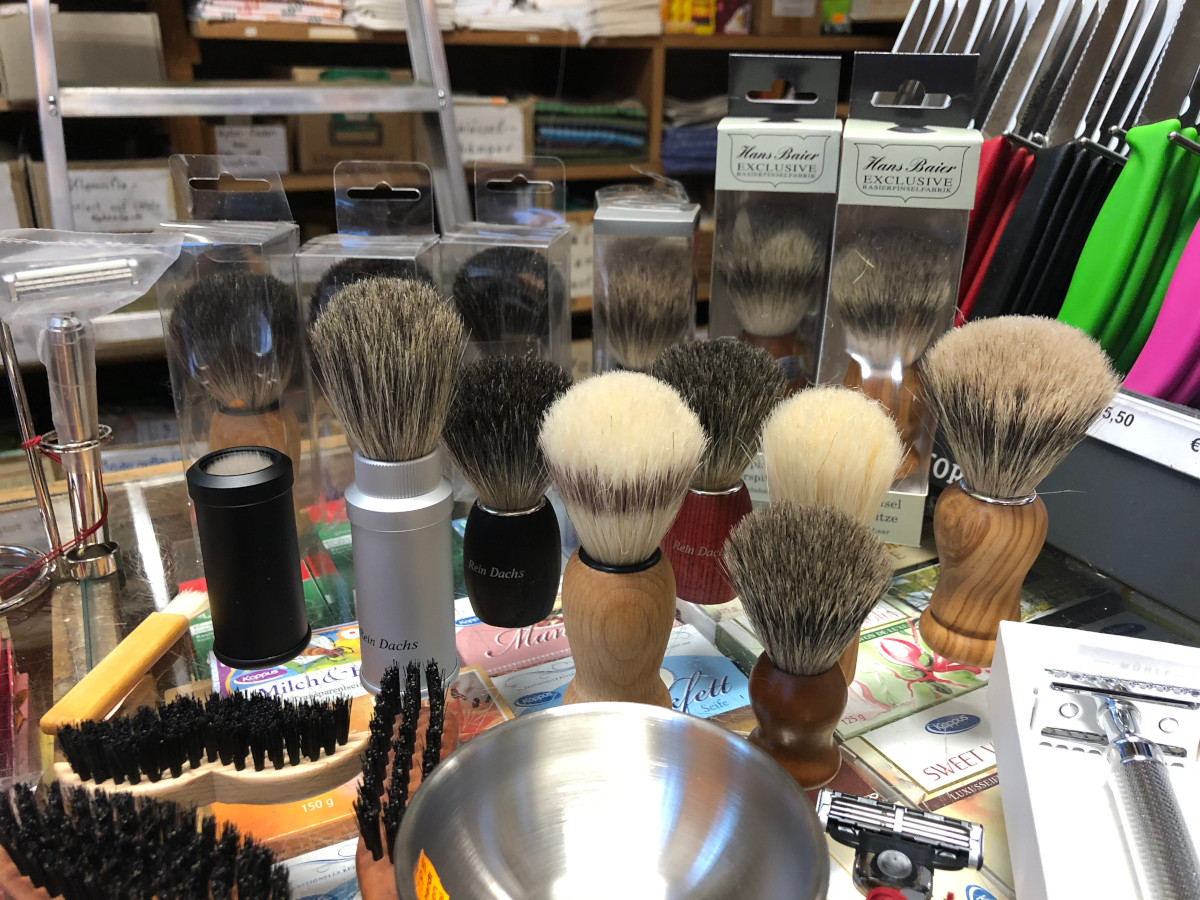 Männersache! Ihr bevorzugt die Nassrasur? Dann haben wir das Richtige für Euch! Bei uns findet Ihr traditionelle Rasierpinsel mit reinem Dachshaar. Die Griffe sind aus unterschiedlichen Materialen, wie zum Beispiel aus Buchen- oder Olivenholz. Neben Rasierpinseln, bekommt Ihr auch eine große Auswahl an Rasierseifen, Aufschäumbechern, Rasierhobeln und Bartbürsten bei uns.